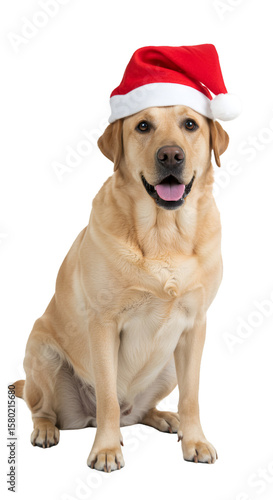 Isolated Christmas Labrador Dog with Red Santa Hat for Festive Season