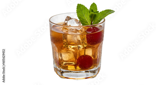 Isolated Cocktail Illustration With Cherry Mint And Ice On Transparent Background