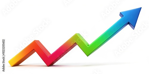 Isolated colorful upward trend arrow on white background, financial, growth, success, market, investment, profit, business