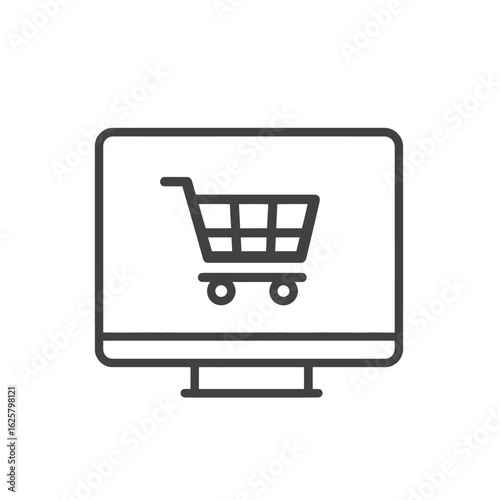 Isolated Computer Display with Shopping Cart Icon on Transparent Background