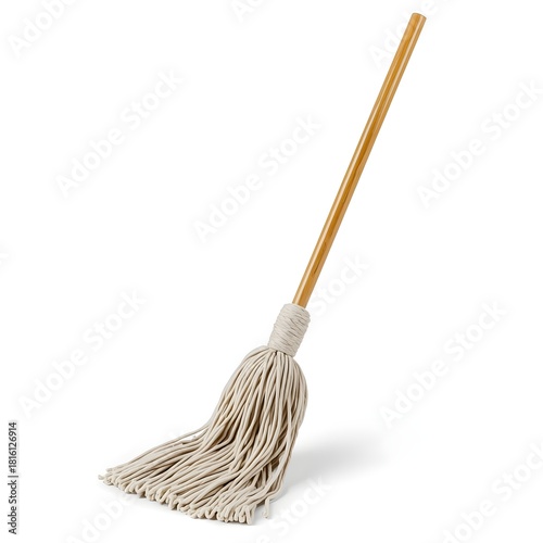 Isolated Cotton String Mop with Wooden Handle