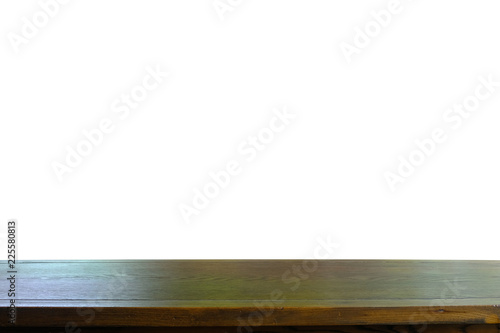 Isolated empty dark tone wooden table on white background for display or montage your products. (Clipping Path included)