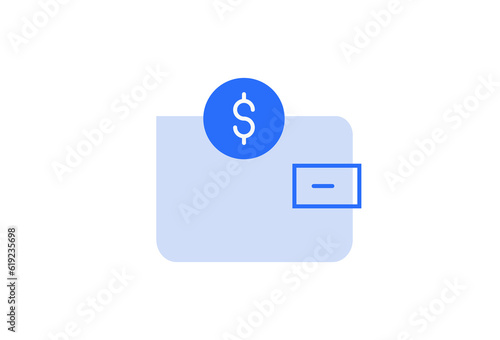 Isolated Geometric wallet with money illustration in flat style design. Vector illustration. Duotone blue color.