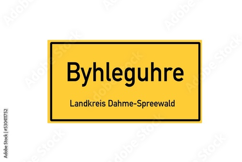 Isolated German city limit sign of Byhleguhre located in Brandenburg