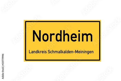 Isolated German city limit sign of Nordheim located in Th�ringen