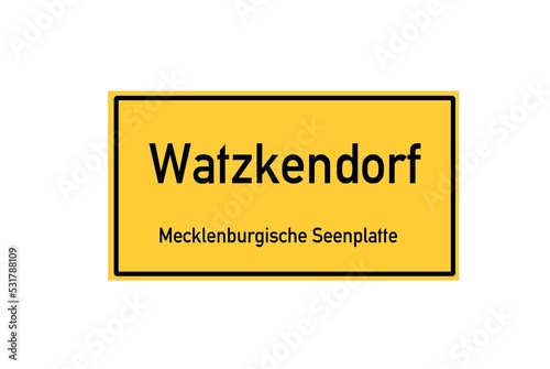Isolated German city limit sign of Watzkendorf located in Mecklenburg-Vorpommern
