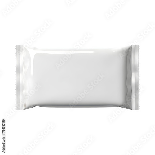 Isolated Glossy White Rectangle Snack Packaging Mockup, Plain Food Bar Wrapper, Commercial Product, Empty Container, Clean Presentation