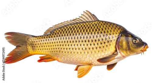 Isolated Golden Carp Freshwater Fish, Aquatic Animal with Scales and Fins. Side View