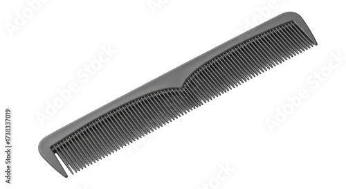 Isolated gray comb for styling and grooming hair with close-up view to the fine teeth