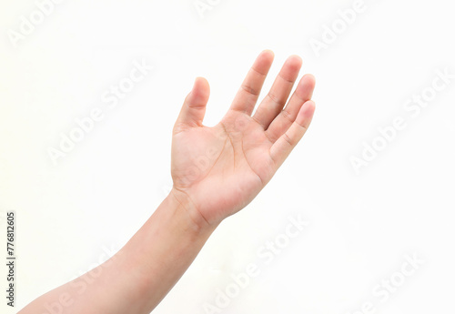 Isolated hand gesture of a woman showing a sign, on a white background