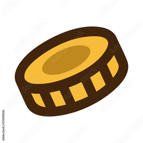 Isolated Hanukkah Gelt Illustration with Brown Outline on White Background