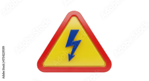 Isolated high voltage sign, yellow triangle with red border, blue lightning symbol inside