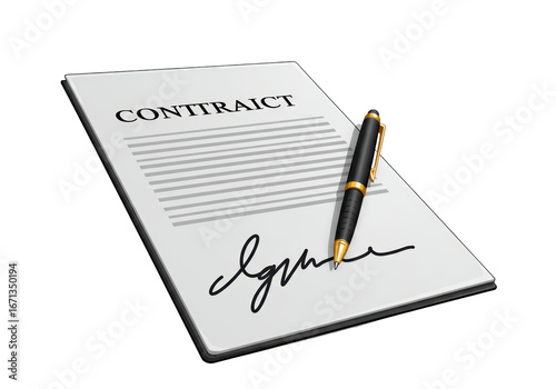 Isolated Illustration of a Legal Contract Being Signed with a Stylus Pen on Sheet