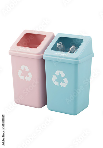 Isolated Illustration Of Two Recycle Bins Pink And Blue In Transparent Background