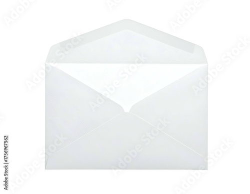 Isolated image depicts an opened, white paper envelope with a matte finish