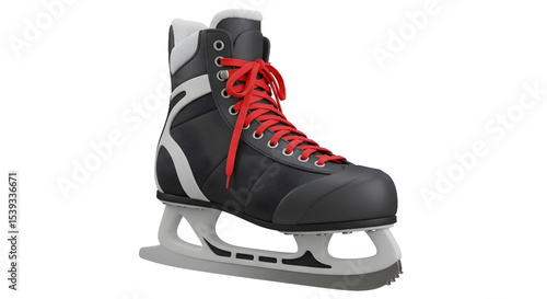 Isolated Image Of A Black Ice Skate With Red Laces And White Accents On Transparent Background