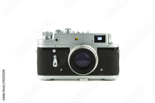 isolated in white vintage camera / overwhite portrait of a old metal camea