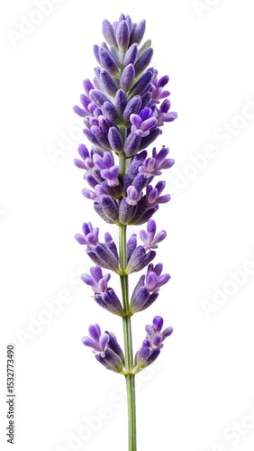 Isolated Lavandula Angustifolia Flower Spike against a White Background Shows Delicate Details