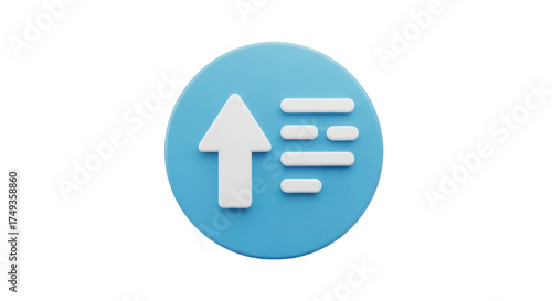 Isolated light blue round icon representing upload and more options, on a simple background