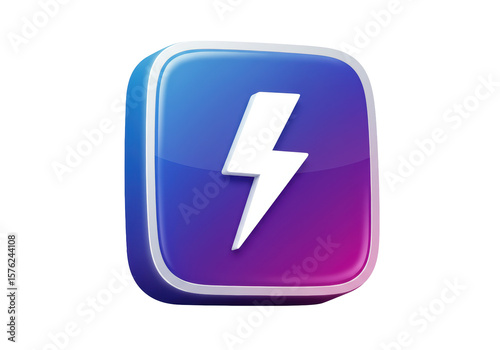 Isolated Lightning Bolt Icon on a Glossy Square