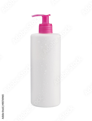 Isolated liquid soap. White plastic bottle on a white background