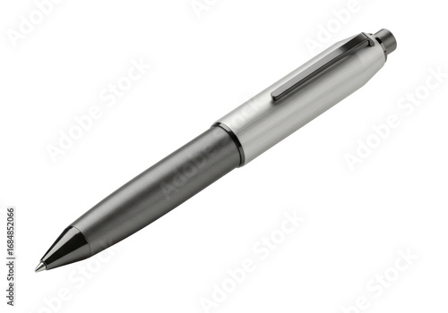 Isolated metallic ballpoint pen for writing, signing documents with silver finish cap clip