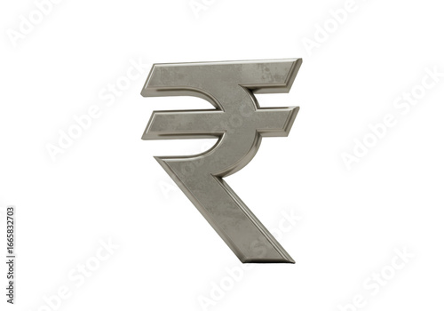 Isolated Metallic Rupee Symbol on Transparent Background