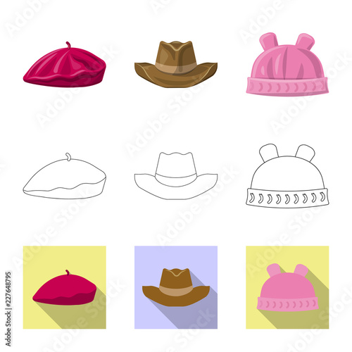 Isolated object of headgear and cap sign. Collection of headgear and accessory stock vector illustration.