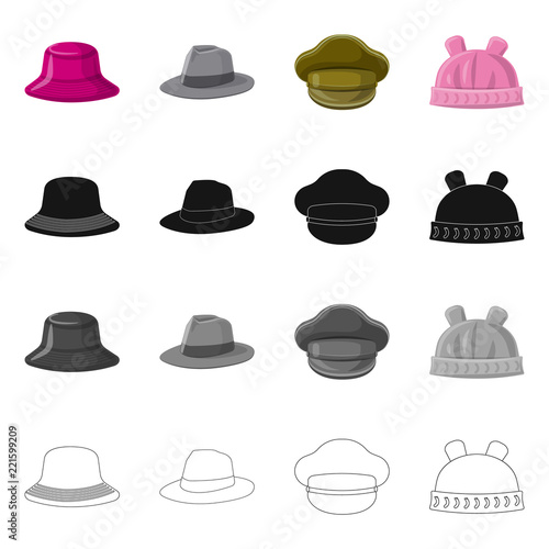 Isolated object of headwear and cap symbol. Collection of headwear and accessory vector icon for stock.