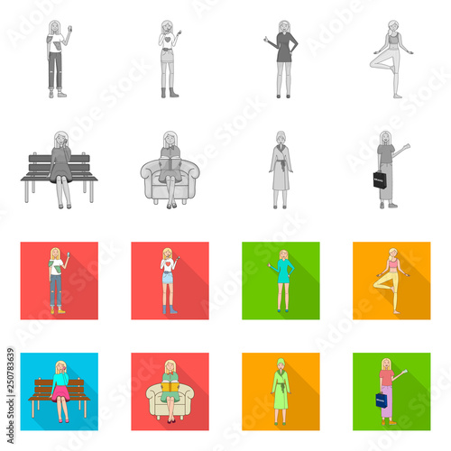 Isolated object of posture and mood icon. Collection of posture and female vector icon for stock.