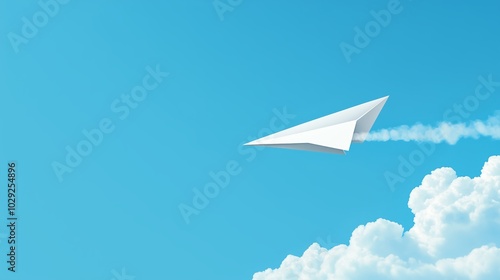 Isolated paper airplane on a clear blue sky background.