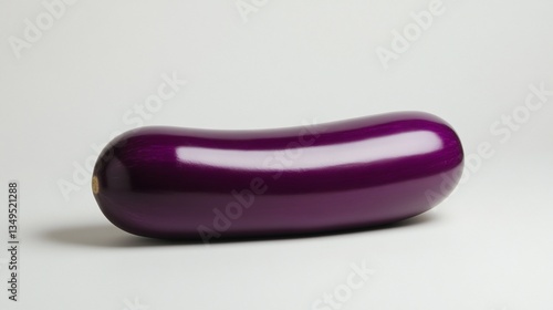 Isolated purple eggplant with glossy skin exhibiting natural shine and form