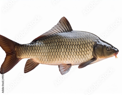 isolated real fish on white background, freshwater fish with head tail fresh catch from pond