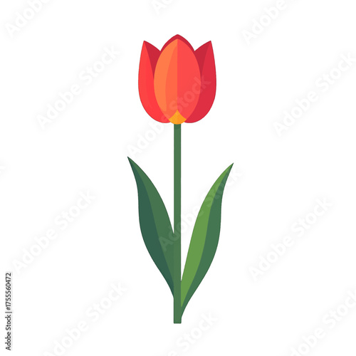 Isolated Red Tulip on White Background a Simple Elegant Floral Illustration with Green Stem and Leaves