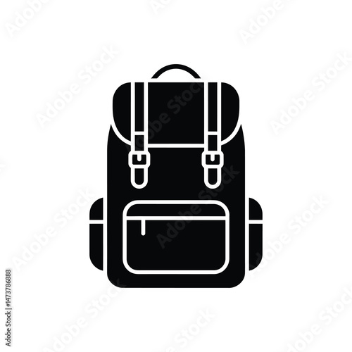 Isolated rucksack design with buckles and front pocket on transparent
