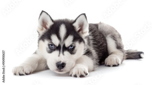 Isolated Siberian Husky Puppy on White Background