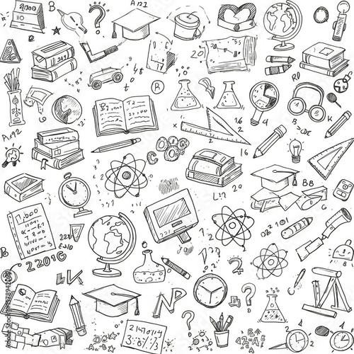 Isolated Sketch Education Background Seamless Pattern with School Elements