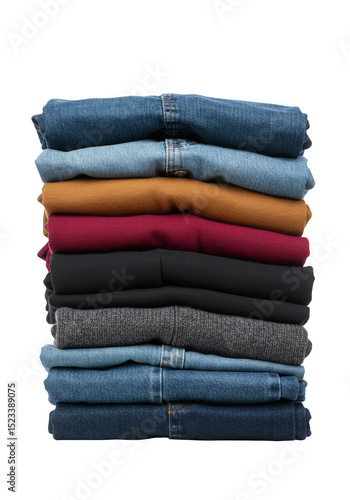 Isolated Stack Of Colorful Folded Clothes In Transparent Background