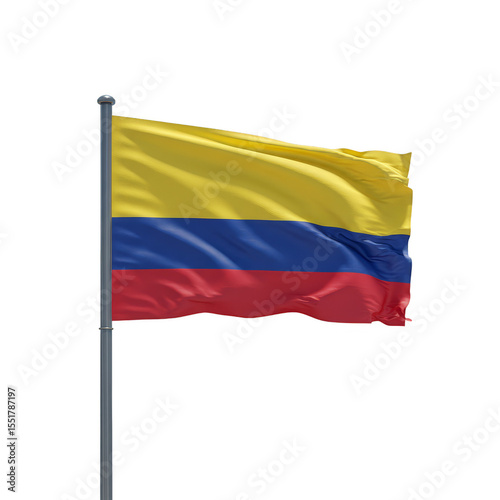 Isolated Transparent Background of a Waving Colombian Flag in Blue Yellow and Red