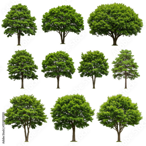 Isolated Tree Collection Transparent Green Foliage On Transparent Background