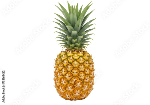 Isolated tropical pineapple fruit with green crown, ripe and juicy, delicious flavor