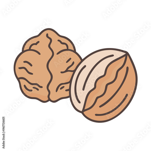 Isolated walnuts illustration, healthy snack, nutritious food, culinary ingredient, brown nuts, shell