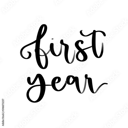 Isolated words first year written in hand lettering