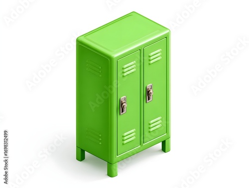 Isometric 3D locker cabinet metal storage isolated on plain white