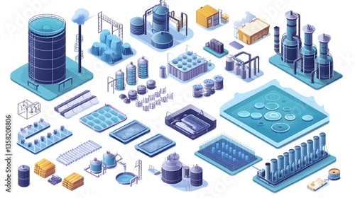 Isometric Industrial Buildings: Modern Factory Illustrations for Professional Presentations and Designs