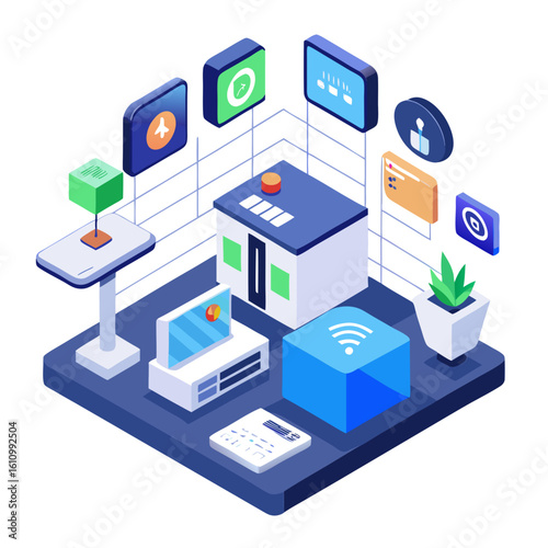 Isometric smart home technology and services concept isolated on white background