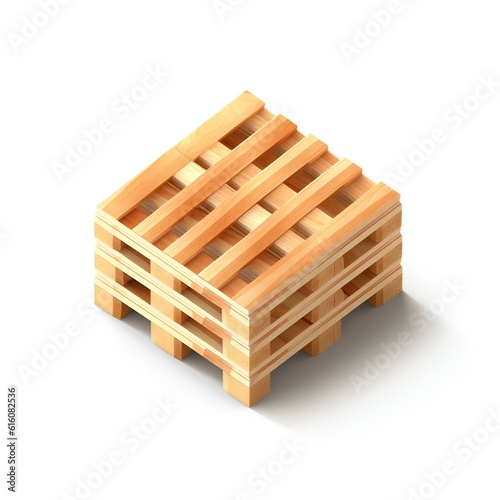 Isometric wooden pallet on white background Generative AI