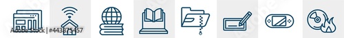 it & components line icons such as mockup de, smarthome, global learning, online lesson, compressed file, burn cd outline vector sign. symbol, logo illustration. linear style icons set. pixel