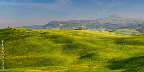 Italy, Tuscany, Green rolling landscape of Val dOrcia
