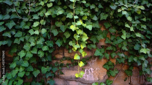 Ivy Covered Brick Wall, Lush Green Foliage, Nature's Embrace